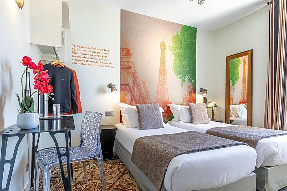 Hotel Alpha Paris Eiffel by Patrick Hayat is delighted to offer a variety of well-appointed room options to cater to all types of travelers. From the cozy Double or Twin Room Eiffel to the spacious Two Adjacent Double Rooms Eiffel, there's a perfect room for every guest. Enjoy the comfort of a private bathroom with a bathtub, free toiletries, and soundproof accommodations in each room. Whether you're traveling solo, as a couple, or with family, you'll find the ideal space to relax and rejuvenate during your stay.